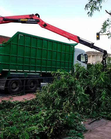 Señalizamos y recogemos la poda, utilizando cubas, pulpo o remolques según sea necesario.